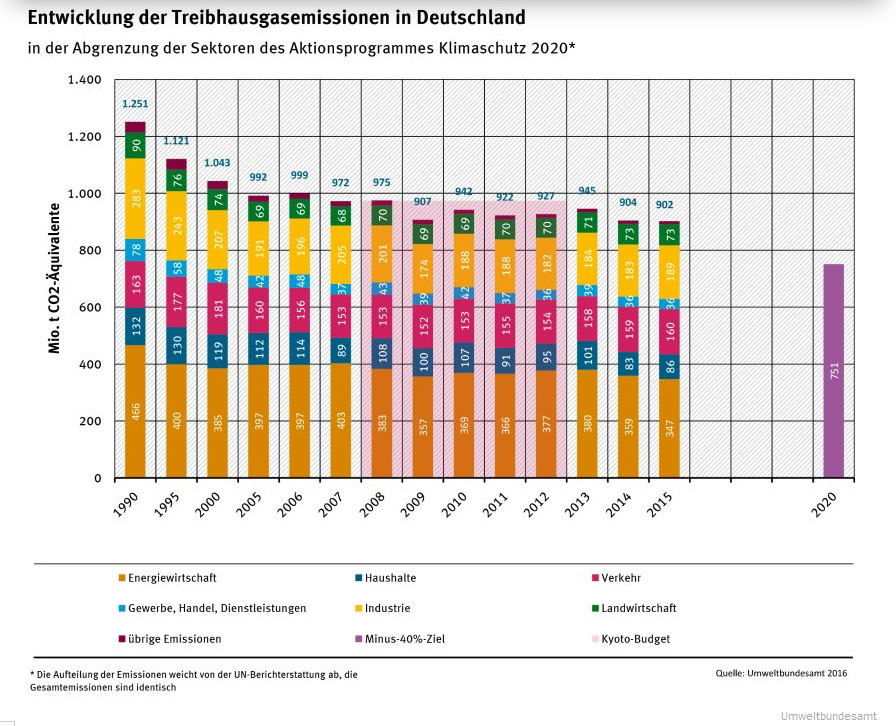 Entwicklung der Treibhausgase in Deutschland von 1990 bis 2015.