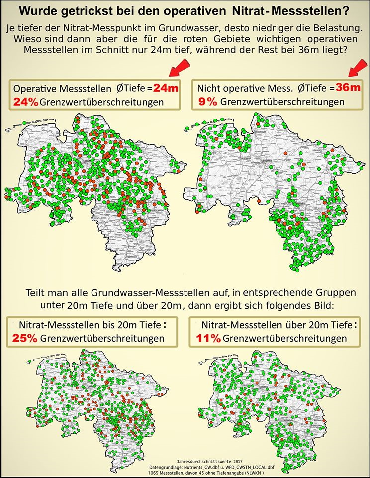 Die niedersächsische Behörde für Wasserwirtschaft (NLWKN) scheint ein Interesse daran zu haben, ein möglichst großes Gebiet als nitratbelastet auszuweisen, um dann über die Düngeverordnung der heimischen Landwirtschaft die Wettbewerbsfähigkeit zu nehmen.